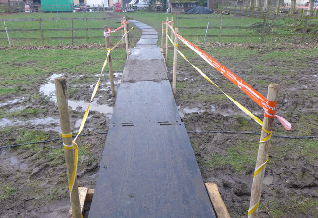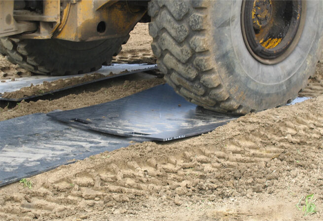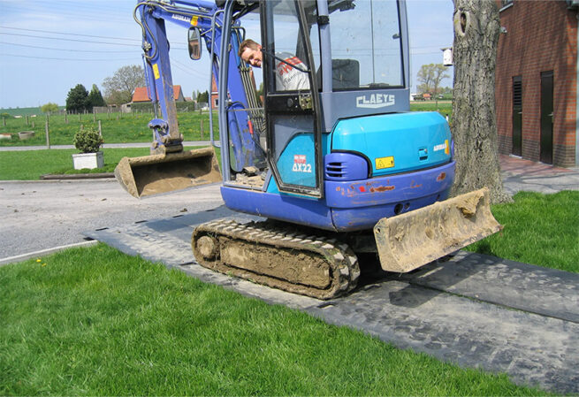 - Chantiers de construction : accès pour camionnettes, grues et véhicules lourds, protection des sols fragiles (gazon, argile, pavés).