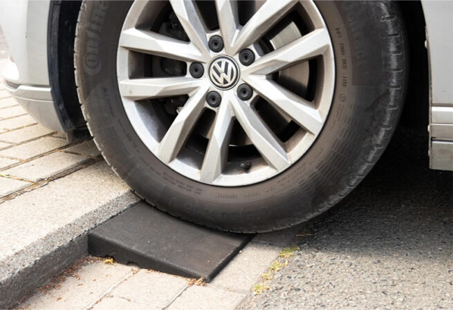 • Accès pour véhicules légers : facilite le franchissement des bordures surélevées, assurant un passage sûr.